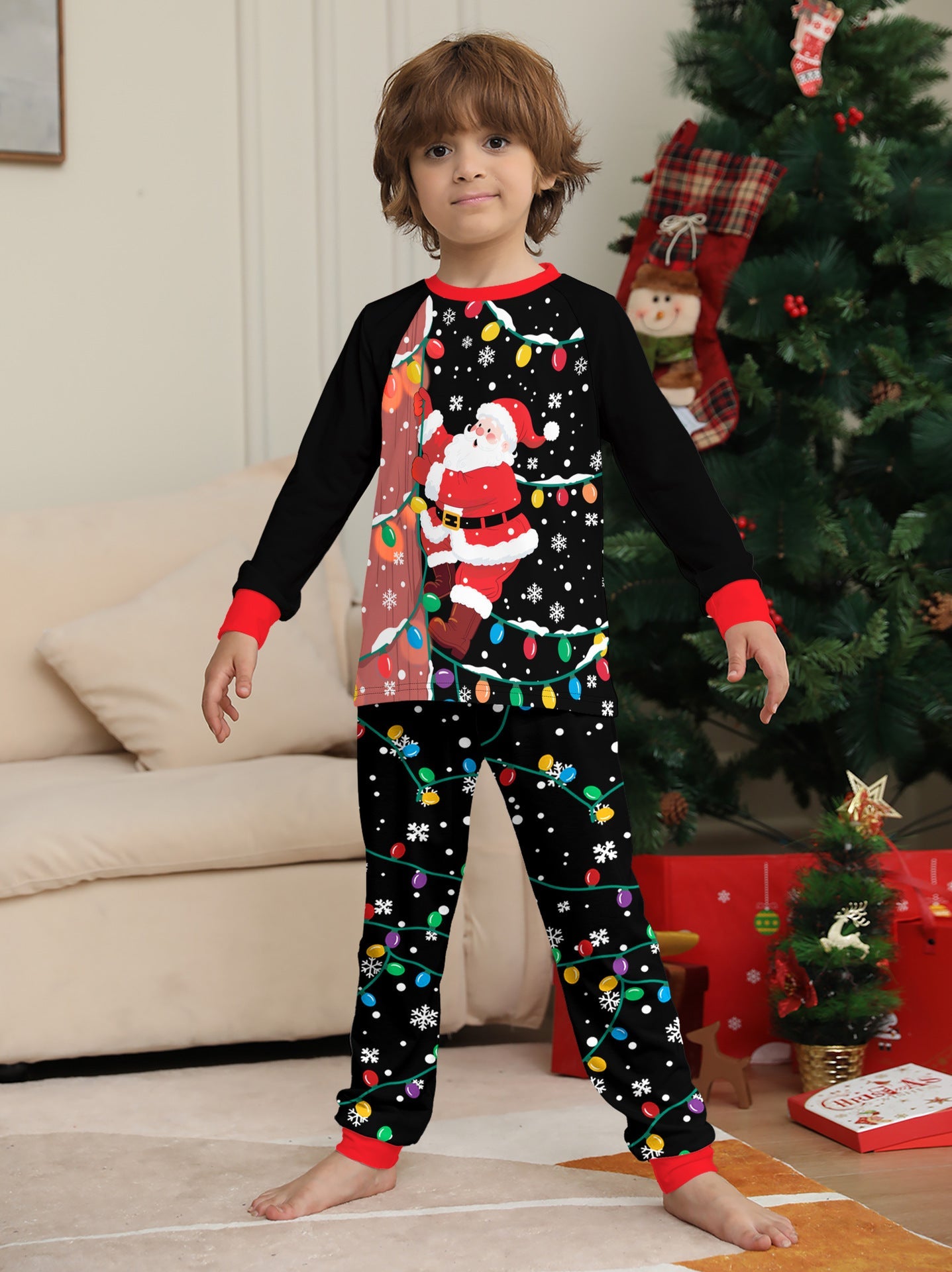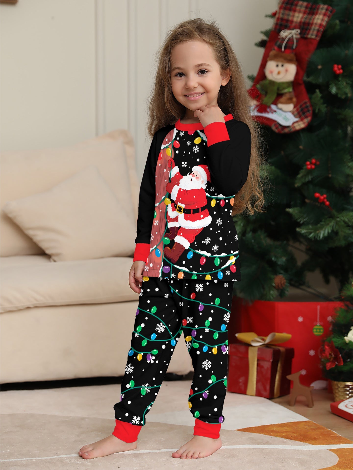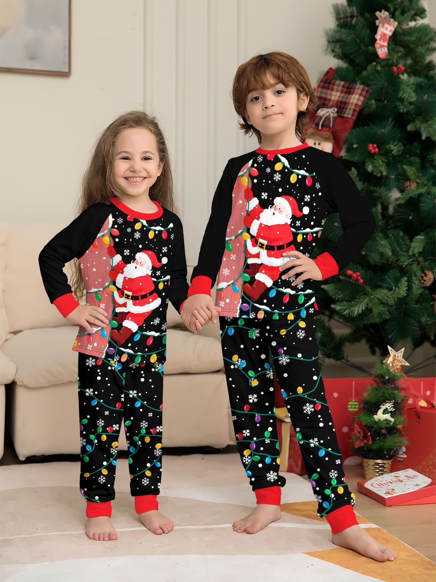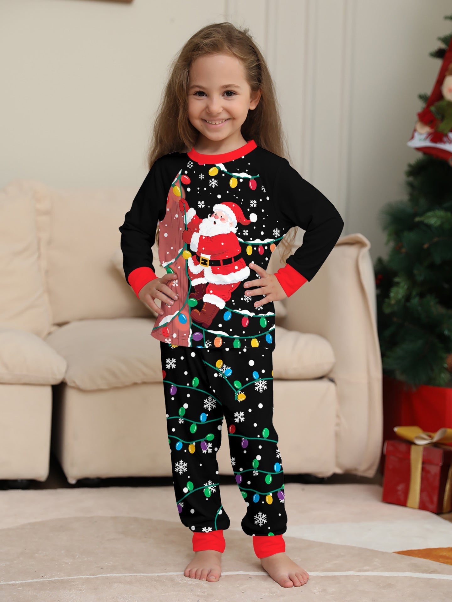 Santa Claus Light Print Christmas Pajamas Family Holiday Pajamas