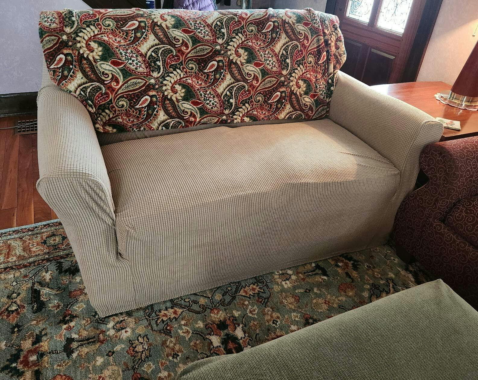 Our 1 piece super stretch jacquard slipcovers are one-size-fits-most. Always measure sofa back width or seat width before ordering: Fit well for Chair 31-47" (81-119cm); Loveseat 58-70" (147-178cm); Sofa 72-88" (183-224cm); XL Sofa 89-103" (226-262cm).